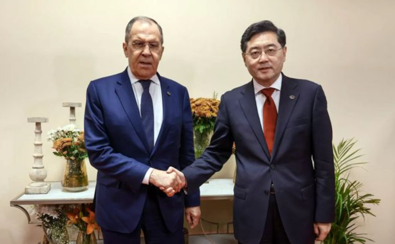 Энэтхэгийн Гоа мужид Хятад, Оросын Гадаад хэргийн сайд нар уулзжээ. Энэ уулзалтын үеэр БНХАУ-ын Гадаад хэргийн сайд Цинь Гань Хятад улс Оростой хамтран Украины сөргөлдөөнийг зохицуулахад хувь нэмэр оруулахад бэлэн байгааг илэрхийлсэн байна.