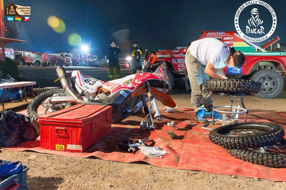 Манай хүн шууд заагаад л нөгөөдүүл нь юу ч гэсэн шууд энэ гээд л аваад ирнэ. Хэхэ хөгжилтэй бас гунигтай. Бид 2 тамирчидын солиод хаясан гинж, гинжний гулгаа, агаар шүүгчийг, наклад зэргийг нь авч тавина. Болив ядуу улс гэтэл Дакарт явж байгаа бүх тамирчид нь бүхэл бүтэн арын албатай, сэлбэг нь гэхэд 2 мотоцикл шинээрээ адилхан дугаар, хуулгатай, өдөр болгон шинэ мото, өдөр болгон шинэ хувцастай. Атаархмаар. Бид 2 эхний өдрөө шинэ байсаан байсан. Гомдоллох эрхгүй, энэ олон чанга эрсийн дунд нь ирээд явж байгаа бас азтай хүмүүс.