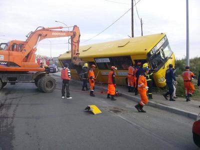 Аврах ажиллагааг шуурхай зохион байгуулж автобусны зүүн талын гэрлийн шонгоос аврах олсоор татаж, холматро багажны даацын тулгуураар баруун талын хаалганы багана, хойд талаас тулж бэхэлжээ.