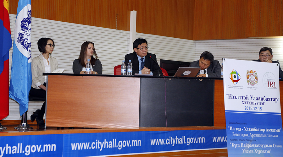 Нийслэлийн Засаг даргын Тамгын газар, нийслэлийн Засаг даргын дэргэдэх “Ил тод Улаанбаатар Академи” Зөвлөлдөх Ардчиллын танхим, Бүгд Найрамдахчуудын олон улсын хүрээлэн хамтран “Нээлттэй Улаанбаатар” хэлэлцүүлгийг зохион байгууллаа. Хэлэлцүүлэгт нийслэлийн Нутгийн захиргааны байгууллага, Авлигатай тэмцэх газар, Төрийн бус байгууллага, Дүүргүүдийн Эрүүл мэндийн нэгдэл, Ерөнхий боловсролын сургуулиудын төлөөлөл зэрэг 300 орчим иргэн оролцов. Хэлэлцүүлгээр Нийслэлээс авлигыг бууруулах чиглэлээр хийж буй багц ажлууд, Авлигатай тэмцэх, хариуцлага, шударга ёсыг бэхжүүлэх үндэсний хөтөлбөрийн тухай, Эдийн засгийн хамтын ажиллагаа, хөгжлийн байгууллагаас гаргасан 2015 оны үнэлгээний тайлан, зөвлөмж, Нийслэлийн нутгийн захиргааны байгууллагуудаас үзүүлж байгаа Төрийн үйлчилгээний ил тод байдал, хүртээмжийг иргэдийн онооны картаар үнэлсэн үнэлгээ зэргийг танилцууллаа.