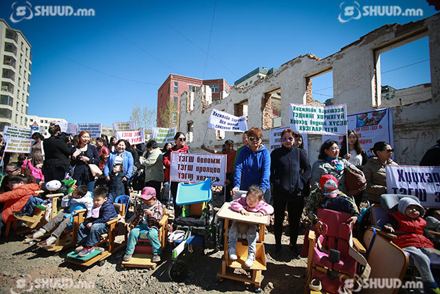 Улсын хэмжээнд даун, аутизм, хавсарсан оноштой, тархины саажилттай хүүхдүүдийг асран сувилж нийгэмшүүлдэг ганц цэцэрлэг байдаг нь 10 дугаар цогцолбор төв юм. Гэвч 2013 оны дөрөвдүгээр сарын 4-нд уг цэцэрлэгийн байранд үйл ажиллагаа явуулах боломжгүйд хүрсэн дүгнэлтийг мэргэжлийн хяналтын байгууллагаас гаргасан. Концессын гэрээгээр уг төвд шинээр барилга барьж өгөх шийдвэр гарсан ч Улсын төсвийн 2017 оны тодотголын хоёр дахь хэлэлцүүлгийн үеэр барилгын асуудал дахин хойшилсон тул тус цэцэрлэгийн сурагчдын эцэг эх цэцэрлэгийн нурсан барилгын гадна талбайд жагсаал зохион байгууллаа.