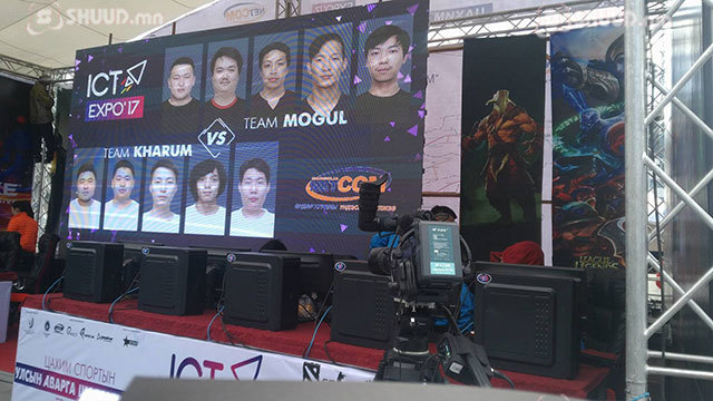 Харилцаа холбоо, мэдээллийн технологийн салбарын хөгжил дэвшлийг харуулдаг “ICT-EXPO-2017” үзэсгэлэн яг одоо Сүхбаатарын талбайд болж байна. 11 дэх жилдээ зохион байгуулагдаж буй үзэсгэлэнгийн энэ жилийн уриа “Төсөөллөө биелүүлцгээе”. Үзэсгэлэнд харилцаа холбооны салбарт үйл ажиллагаа явуулж буй 60 орчим байгууллага оролцож байна. Эдгээр байгууллагын үйл ажиллагааг тайлбарлаж буй асар дундаас Цахим спортын улсын аварга шалгаруулах тэмцээн болж буй хэсэг хамгийн олон үзэгчтэй байлаа. Энэ үеэр Монголын Цахим спортын хөгжлийн холбооны ерөнхий нарийн бичигийн дарга О.Тэмүүжингээс тэмцээний талаар тодруулсан юм.