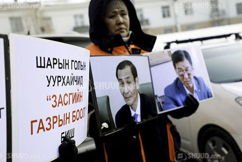 Эрчим хүчний зохицуулах хорооны гадна Шарын голын уурхайчдын төлөөлөл жагслаа. Уурхайчид ЭХ-ний сайд Ц.Даваасүрэн Шарын голын уурхайг дампуурлын ирмэгт хүргэж байгааг эсэргүүцэн мэдэгдэл хийв. “Шарын гол” үйлдвэрчний хорооны дарга Л.Наранбаатар: