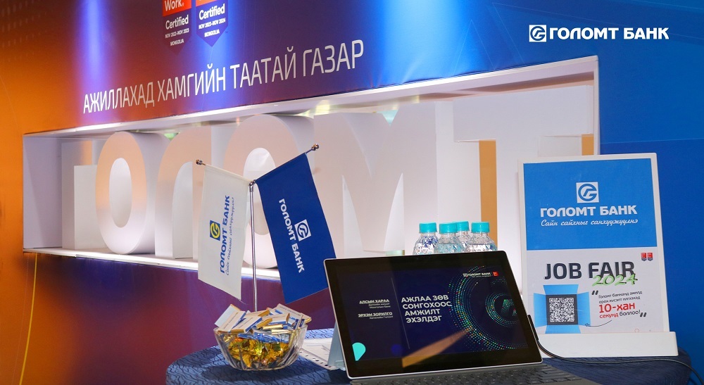 Голомт банк болон Голомт капитал үнэт цаасны компани хамтран энэ сарын 2, 3-ны өдрүүдэд нээлттэй ажлын байрны өдөрлөг зарлалаа. Бизнесийн цар хүрээгээ өргөжүүлэн тэлж байгаатай холбогдуулан шинээр 100 гаруй ажлын байр зарласан бөгөөд “Job fair 2024” өдөрлөгийн үеэр нээлттэй ажлын байрны мэдээллийг танилцуулахаас гадна ажил горилогчид 10 секунд зарцуулаад ажилд орох хүсэлтээ цахим хэлбэрээр илгээх боломжийг бүрдүүлжээ.
