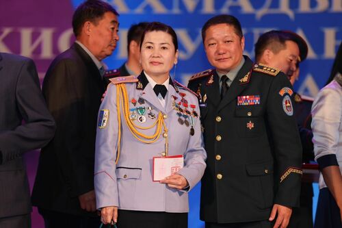 Хүндэтгэлийн арга хэмжээний төгсгөлд Монгол Улсын Ерөнхийлөгчийн зарлигаар "Зэвсэгт хүчний 100 жилийн ойн медаль", Батлан хамгаалахын сайдын тушаалаар "Дайчин Алдар-1" медалиар шагнагдсан бэлтгэл офицер, ахмадуудад Батлан хамгаалахын сайд Д.Батлут, ЗХЖШ-ын дарга дэслэгч генерал С.Ганбямба, Батлан хамгаалахын Ерөнхий хянан шалгагч бригадын генерал Ж.Болдбаатар нар одон тэмдгийг нь ёслол төгөлдөр гардуулан өглөө.
