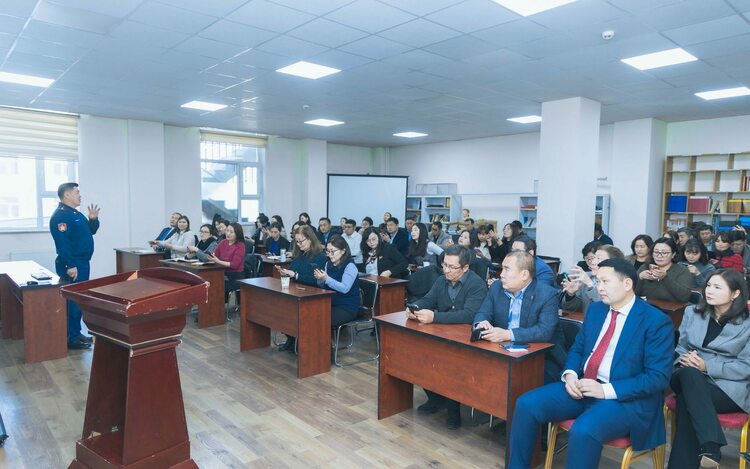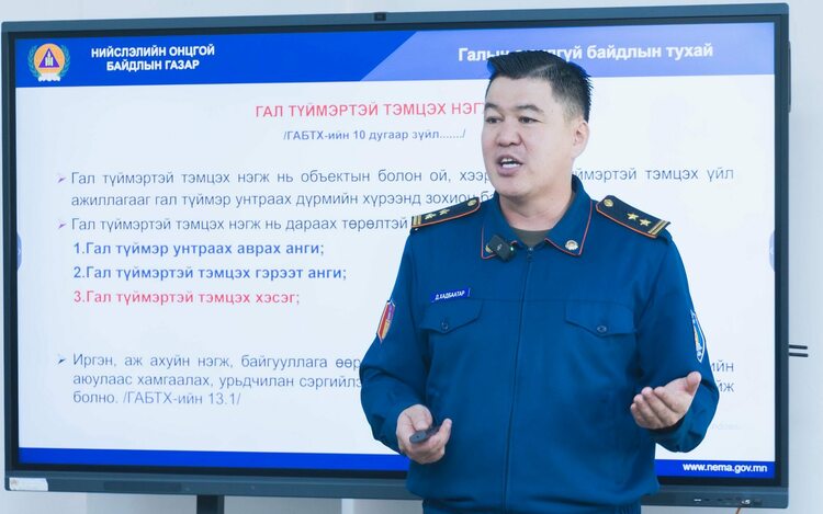 Онцгой байдлын албан хаагчид газар хөдлөлт, гал түймэр, химийн болон техникийн ослын үед хэрхэн түргэн шуурхай хариу арга хэмжээ авах, иргэдийг аюулгүй байлгах, байгууллагын нүүлгэн шилжүүлэх талаар мэдээлэл өглөө.