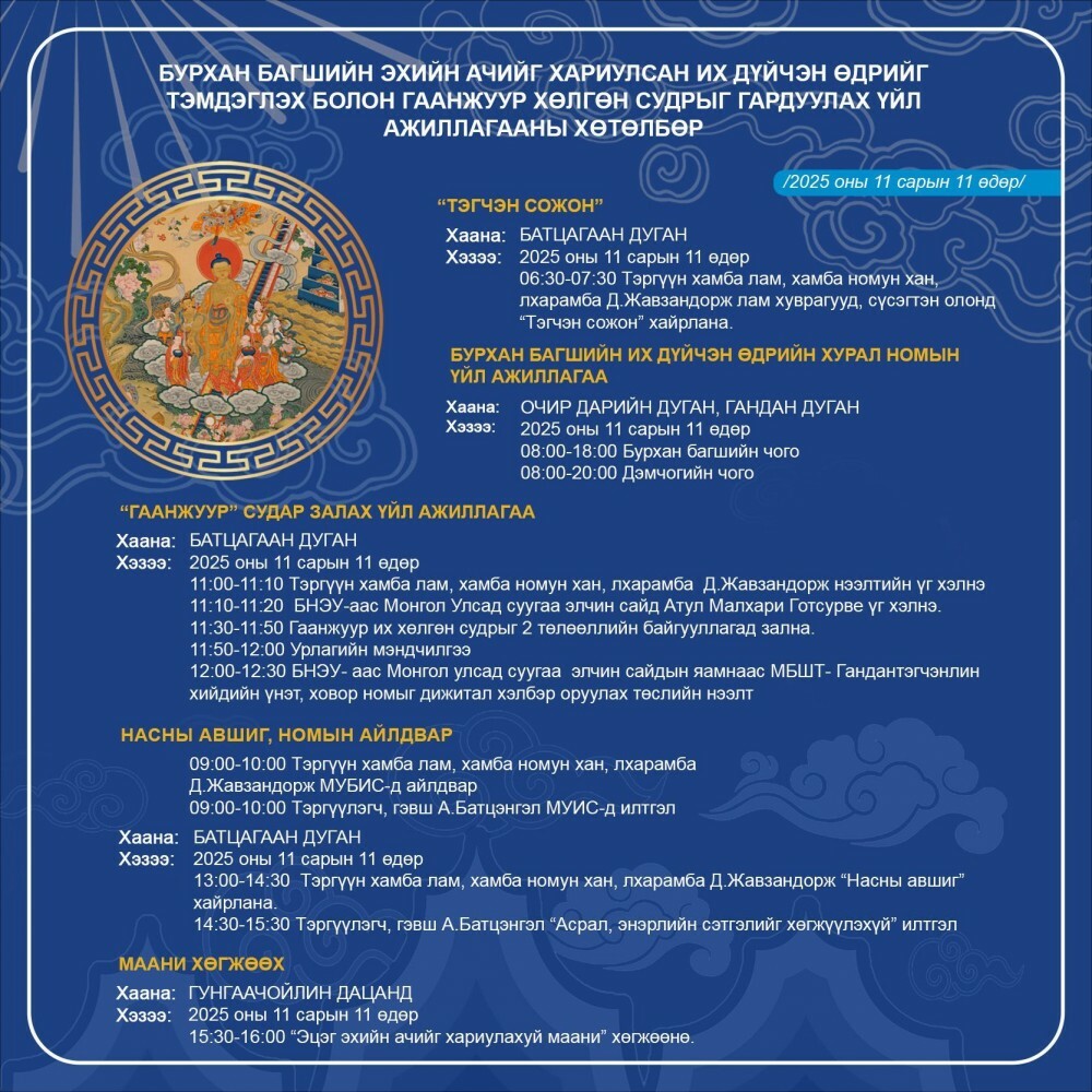 Бурхан багшийн эхийн ачийг хариулсан дүйчэн өдөр маргааш болно