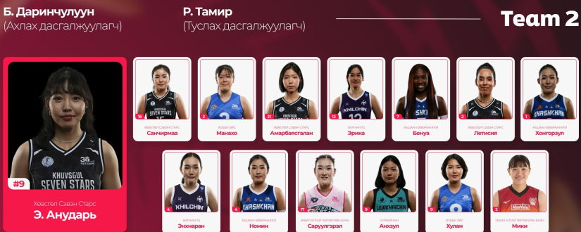 Үзэгчид, волейболын спорт сонирхогчдоос хамгийн өндөр санал авсан 28 тоглогч драфтаар хоёр багт хуваагдан өрсөлдөх энэхүү тоглолт эрэгтэй, эмэгтэй тус бүр 10 легионер тоглогч багтжээ. Эмэгтэйчүүдийн тоглолтын нэгдүгээр багийг “Хилчин”-ий Б.Халиунзаяа ахалж байгаа бөгөөд тэрбээр “Бүх оддын тоглолт”-д хоёр дахиа оролцоно. Харин хоёрдугаар багийн ахлагчаар “Хөвсгөл долоон од”-ын Э.Анударийг сонгожээ. Тэр анх удаа “Бүх оддын тоглолт”-д өрсөлдөхөөр болсон нь энэ. Эмэгтэйчүүдээс “Хөвсгөл долоон од”-ын П.Энххүслэн хамгийн олон буюу дөрвөн удаа “Бүх одддын тоглолт”-д сонгогдсон бол анх удаа оролцох долоон монгол тоглогч байна. Харин эрэгтэйчүүдийн нэгдүгээр багийг “Дархан Могулс”-ын Г.Төрбат, хоёрдугаар багийг “Минтонетт Говь”-ийн Н.Бүрэнтөгс нар ахална. Эрэгтэйчүүдээс энэ тоглолтод дөрөв дэхээ орж буй долоон тоглогч байгаа бол анх удаа өрсөлдөх 4 тамирчин байна.