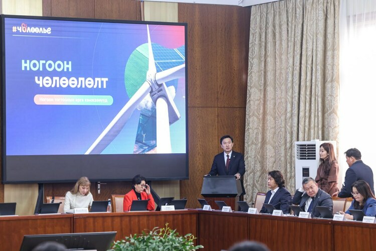 Чингэлтэй дүүрэгт хэрэгжүүлж байгаа энэ үйл ажиллагааг цаашид бусад дүүргүүд, аймгуудад нэвтрүүлэхийг Улсын Их Хурлын дарга уриалж, зүүн болон хангайн бүсийн аймгуудад ажиллахад төвийн сумдад агаарын бохирдол маш өндөр хэрнээ эрчим хүчний дутагдалтай байгааг дурдав. Иймд хувийн хэвшлийн хөрөнгө оруулагч нарт сэргээгдэх эрчим хүчний тархмал эх үүсвэр, дэд бүтэц барьж байгуулахад учирч байгаа дүрэм журам, саад тээгийг арилгаж, чөлөөлөх ёстой гэлээ. Тэрбээр сэргээгдэх эрчим хүч, цахилгаан тээврийн хэрэгслийн цэнэглэх дэд бүтэц, ногоон төслийн чиглэлээр хэрэгжсэн сайн шийдлүүдийг бодит жишээ баримтаар онцлон танилцуулж, зургаан сард барьчих нарны цахилгаан станцын зөвшөөрлийг долоон жил хүлээдэг явдлыг засаж залруулан, бизнес эрхлэгчид, хөрөнгө оруулагчдыг хүнд суртлыг шат дамжлагуудаас чөлөөлөхийг дахин уриалав. Мөн өөрийн санаачлан дэвшүүлж буй эрчим хүчний хараат бус малчин өрхийн зорилт, карбон кредитийг нэвтрүүлж, Евразийн орнуудтай худалдаа хийх боломжийг өргөжүүлэх “Нарлаг Монголын малчин” хөтөлбөрийг товч танилцуулсан юм. Евразийн Эдийн засгийн холбоо (ЕАЭЗХ)-той байгуулсан гурван жилийн хэлэлцээрийн хүрээнд арьс шир, ноос ноолуур зэрэг мал аж ахуйн гаралтай бүтээгдэхүүний татварыг хөнгөлөх, чөлөөлөх бололцоо нээгдэж байгааг Улсын Их Хурлын дарга онцолж, бэлчээрийн даацаа сайжруулж, шингээлтийг нэмэгдүүлэх, ашиглалтын горим, ачааллыг өөрчлөх шаардлагатай 30 сая орчим га газраа сэргээхийг тул карбон зах зээлд нэвтрэх хэрэгтэй гэсэн саналын малчид өөрсдөө тавьж байгаа гэдгийг дурдсан юм. Бэлчээр нутгаа зохистой ашиглаж, нөхөн сэргээж, энэ хугауцаандаа карбон ялгаруулалтыг бууруулж, үүнийхээ кредит оноог тооцуулан олон улсад зарж, малчид өөрсдөө орлого олох бололцоо байгаагаа санал болгож буй юм. Үүнийг ажил хэрэг болгохын тулд бодлого боловсруулах, хэмжих, тайлагнах, баталгаажуулах тогтолцоог бий болгох шаардлагатайг Улсын Их Хурлын тэмдэглэж, өнөөдрийн хэлэлцүүлгээр энэ асуудлыг ярилцаж, шийдэл олох нь зүйтэй гэлээ.