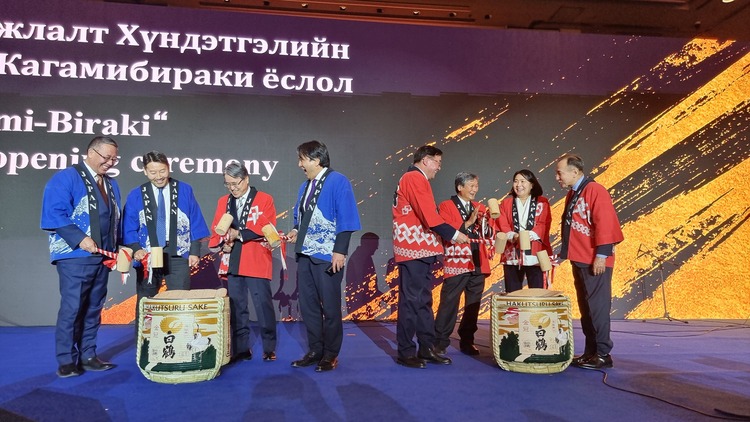 Түүний дараа Шадар сайд Х.Ганхуяг мэндчилгээ дэвшүүлэв. Үргэлжлүүлээд "Кагамибираки" буюу япон сакэ задлах ёслолыг хийсний дараа Монгол, Японы Парламентын бүлгийн дарга Ж.Галбадрах хундаганы үг хэлэв.